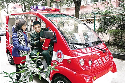 消防車廠家【m.temriaairmet.com】新聞資訊:近日,一輛集滅火和消防宣傳功能于一身的消防電動車在上海投入使用。該消防車專門針對城市老式小區設計.